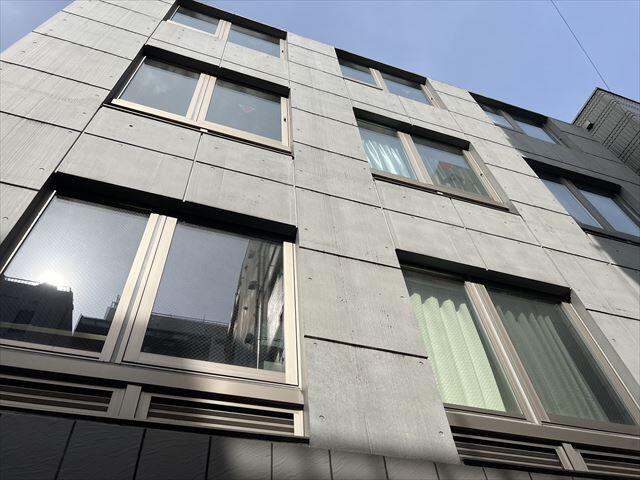 2020年2月竣工の新築オフィスです!グレーのパネル張りとコンクリート打放しのおしゃれな外観の建物です。