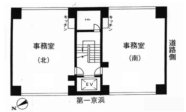 建物中央にエレベーター、階段、隔階男女別トイレがあり、その左右に貸室を配した造りになっています。