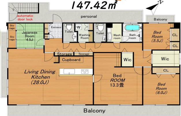 | 間取り | 4K以上 | 面積 | 147.42m² |